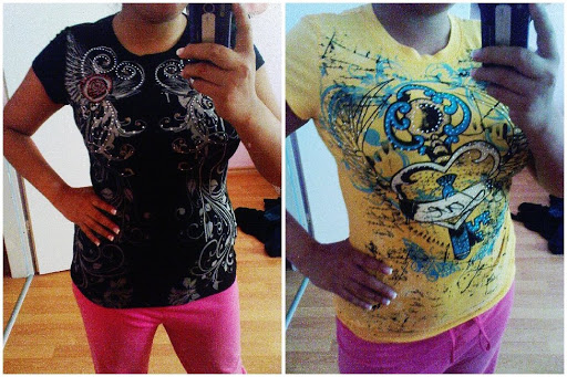 2 EdHardy ähnliche Shirts mit Tattoodrucken von Geri C New York. (bitte nicht meine rosa schlafhose beachten auch wenn sie wirklich sehr sexy ist :P)!
