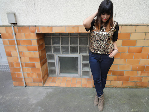 Das hier ist eins meiner Lieblingsshirts. Gekauft habe ich es bei Gina Tricot, schon etwas länger her. Solche Shirts lassen sich super zu schlichten Röcken oder einfachen Jeans tragen – diese ist von ZARA – und schwups, pimpen sie das Outfit total auf. Ach Pailletten sind generell schön. Ich hätte am Anfang nicht gedacht, dass ich ein kleiner Paillettenfreak werden würde, aber irgendwie hat die Modeindustrie es geschafft. Ich liebe gold. Was solls, ich will mehr!