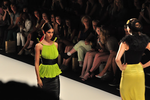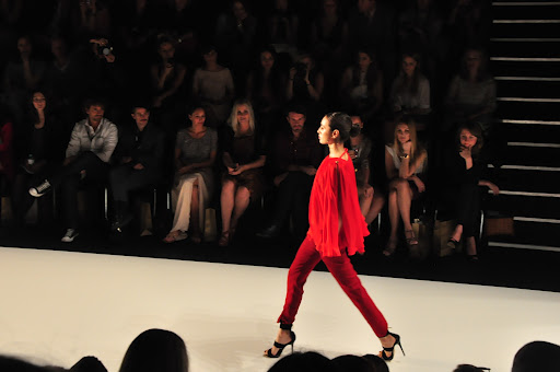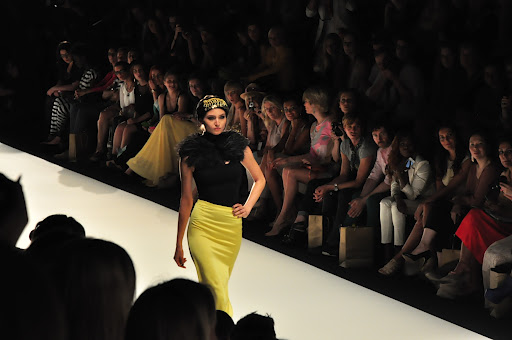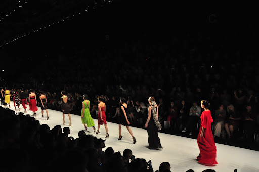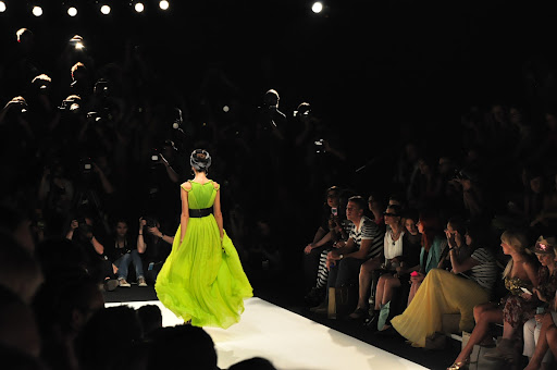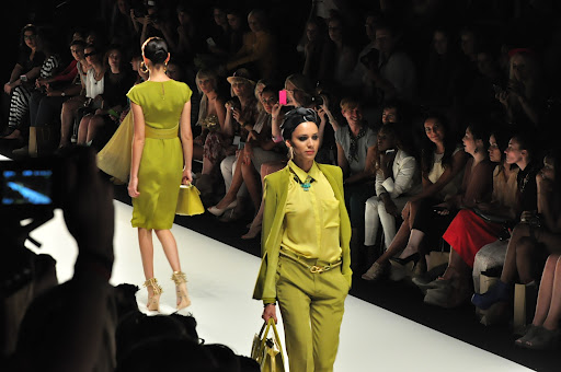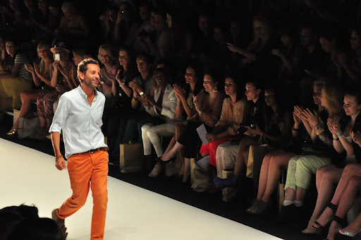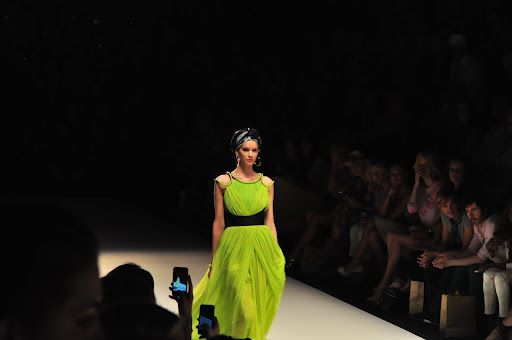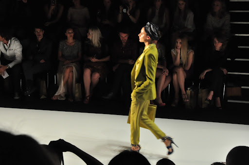 Für den Spring/Summer 2013 präsentierte uns Dimitri unglaublich schöne Kreationen. Zu dem Soundtrack aus dem Film „Wüstenblume“ bewegten sich die Models langsam und fließend über den Catwalk. Es wurde eine unglaublich schöne und gleichzeitig melancholische Atmosphäre durch die Klänge aufgebaut und schnell war ich von den Schnitten verzaubert. Die Farben waren kräftig und strahlten in den Farben rot, gelb und limettengrün. Besonders gut haben mir die eleganten Schnitte in Kombination mit Details im Ethno-Stil gefallen, wie z.B. die Kopfbedeckungen mit goldenen Perlen-Bestickungen und Federn. Das limettengrüne lange Kleid und der grüne Hosenanzug gehörten sofort zu meinen Favoriten. Es war eine wunderschöne Show!
