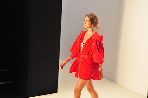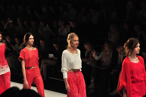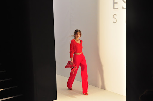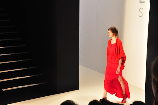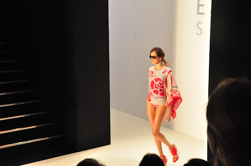 Die Kleidung von Escada war natürlich, wie soll es anders sein, sportlich und ich bekam Lust auf Sonne, Strand und Meer. Die Farben hielten sich alle in rötlichen Tönen und mit Streifen und korallartigen Prints. Vor allem der silberne Schmuck hat es mir total angetan. Am schönsten fand ich das Outfit mit dem weißen Pulli und dem Maxi-Rock in Kombination mit dem silber Schmuck (siehe vorletztes Foto).